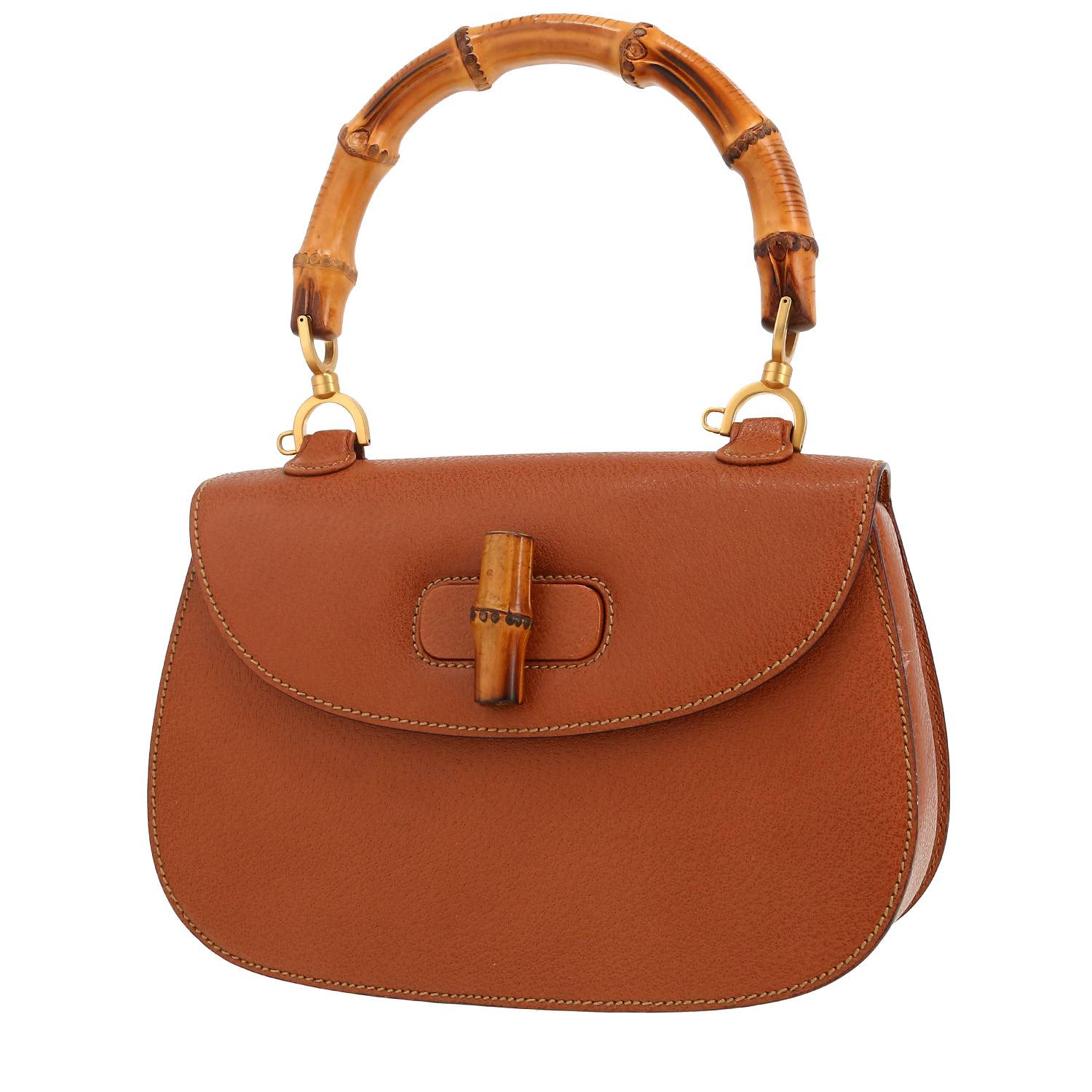Magnifique sac à main Gucci Bamboo en cuir de Pecari marron et bambou, garniture en métal doré, poignée simple en bambou permettant un porté main.