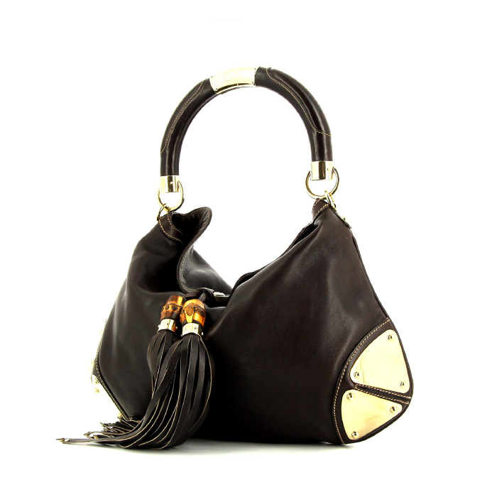 Sac à main Gucci Bamboo Indy Hobo en cuir marron-foncé et bambou Ref Collector Square : 33 18 59