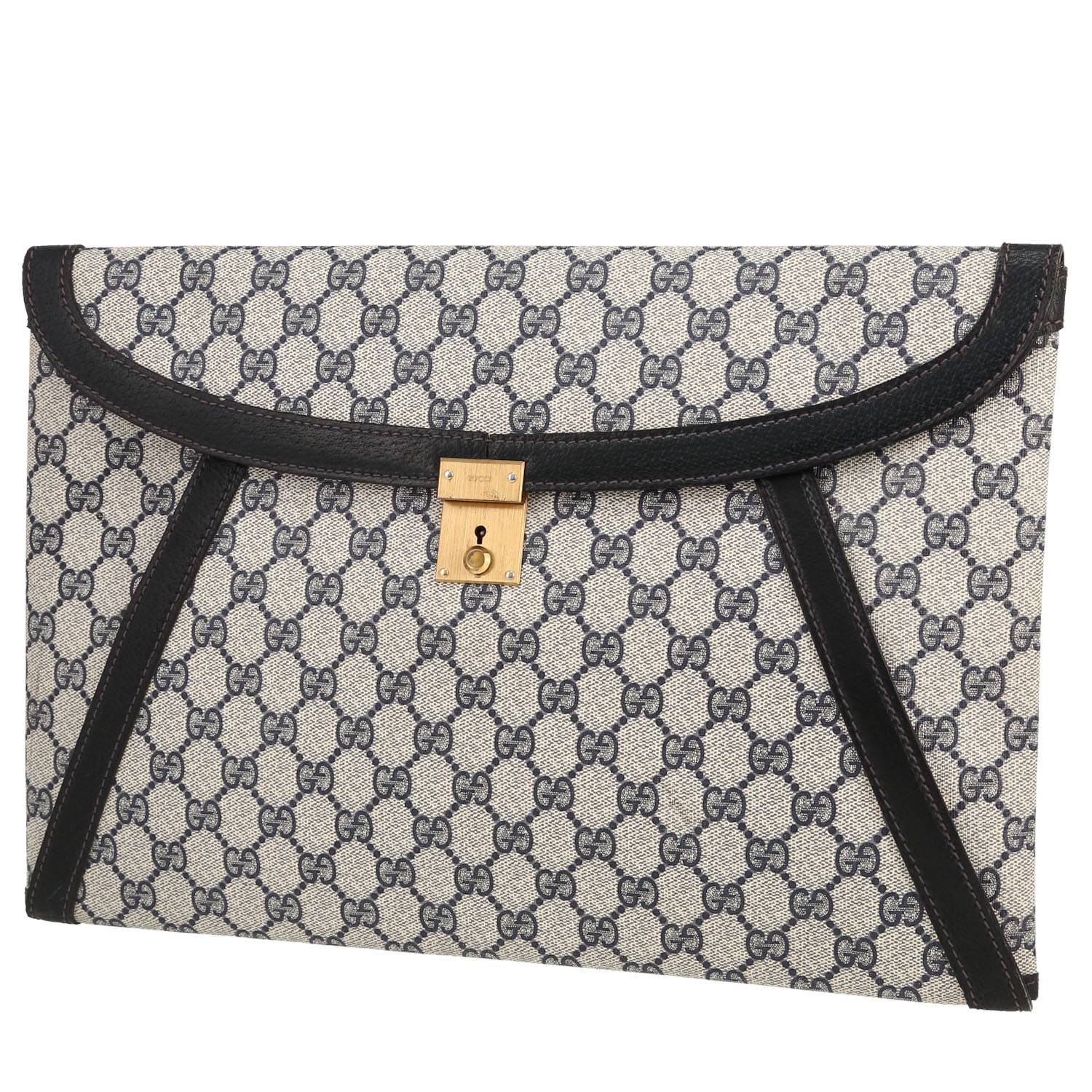 Pochette Gucci en toile sûpreme GG grise et bleue et cuir bleu Ref Collector Square : 41 04 00