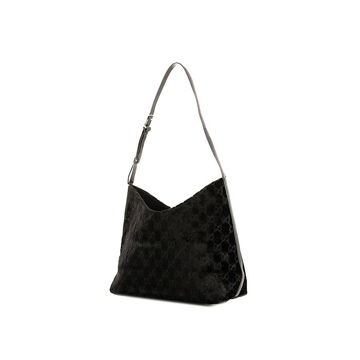 Sac à main Gucci en velours monogram noir et cuir noir Ref Collector Square : 37 46 49