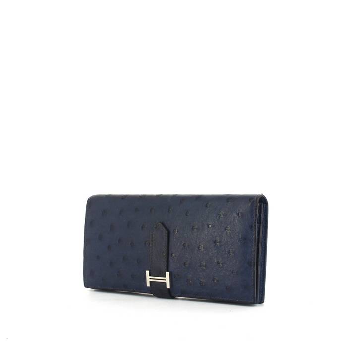 Portefeuille Hermes en autruche bleue Ref Collector Square : 31 87 40