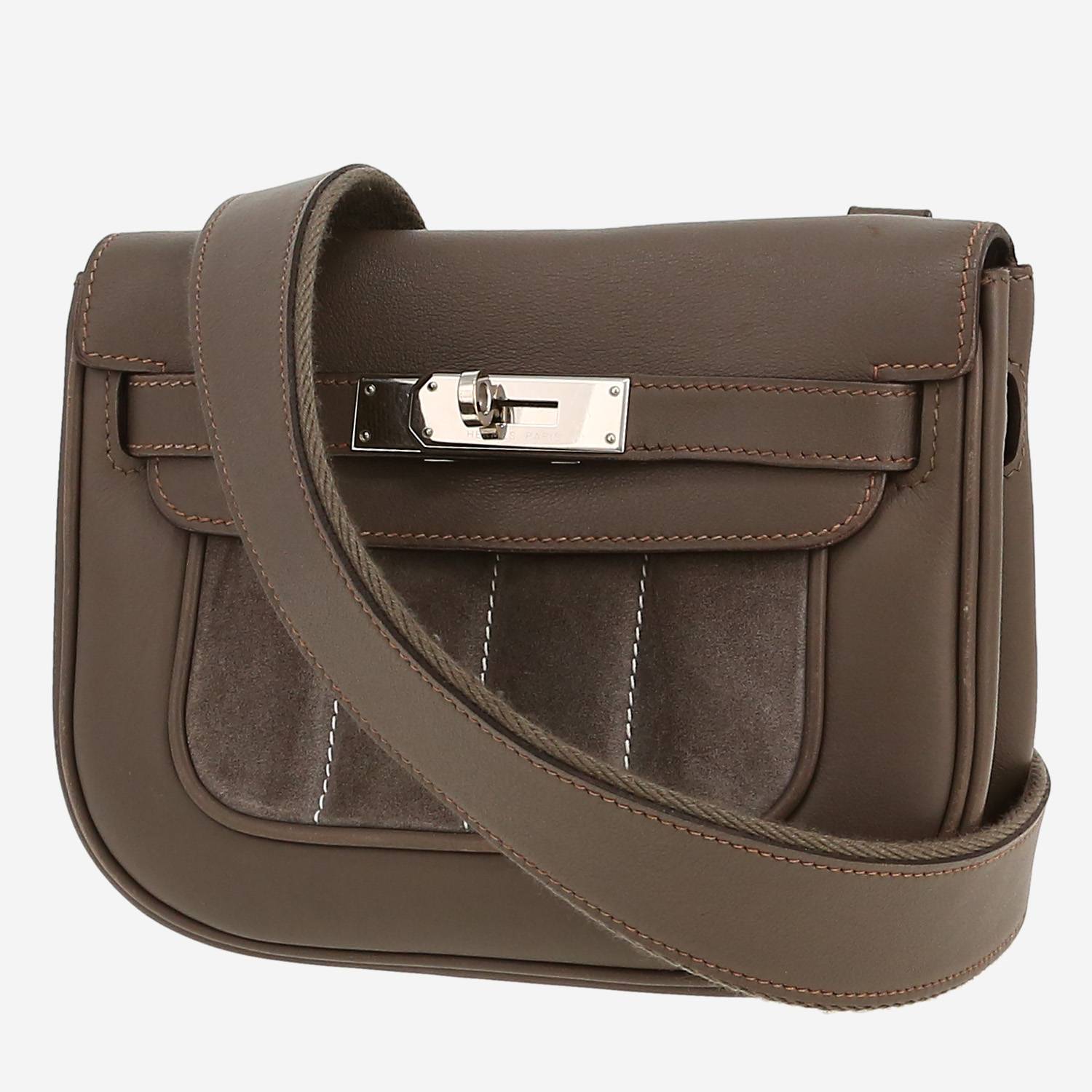 Sac bandoulière Hermès Berline mini en cuir Swift gris et veau doblis gris Ref Collector Square : 42 33 58