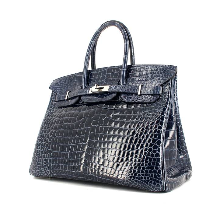 Hermes sac à main Birkin 35 cm en crocodile bleu Ref Collector Square : 27 79 31