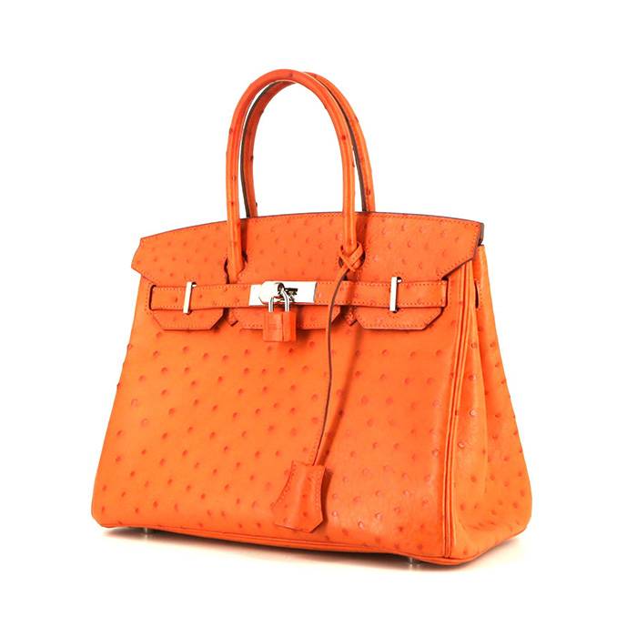 Sac à main Hermes Birkin 30 cm en autruche orange Ref Collector Square : 39 25 19