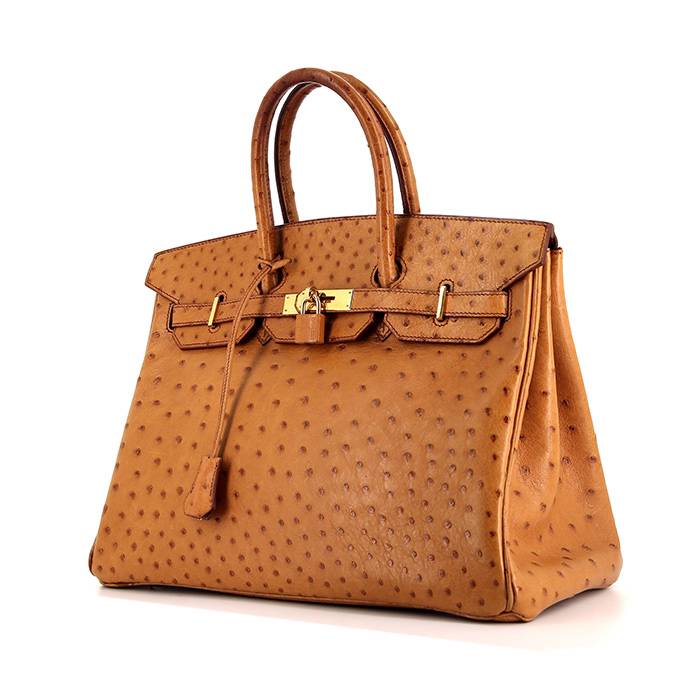 Sac à main Hermes Birkin 35 cm en autruche gold Ref Collector Square : 34 76 23