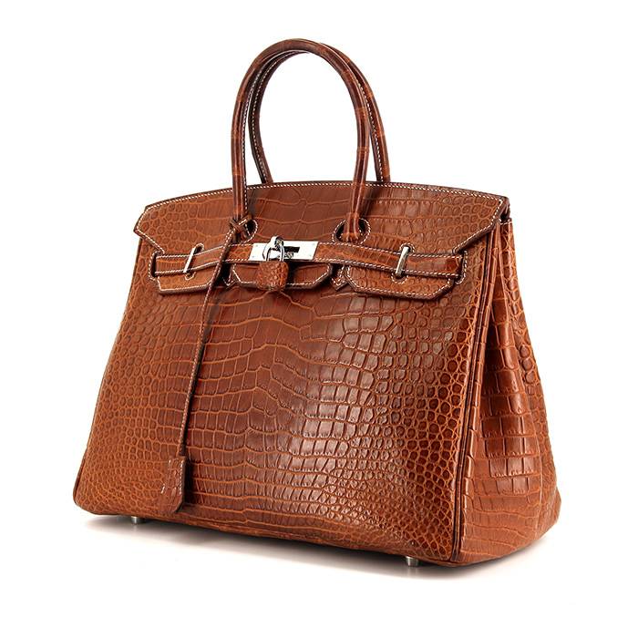 Sac à main Hermes Birkin 35 cm en crocodile porosus fauve Ref Collector Square : 34 91 01