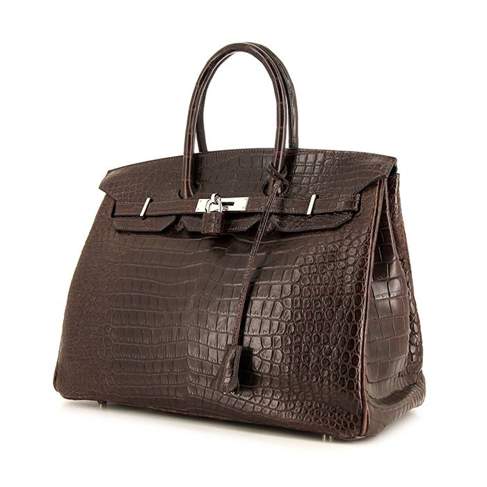 Sac à main Hermes Birkin 35 cm en crocodile porosus marron Ref Collector Square : 37 37 05