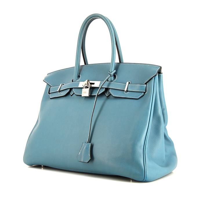 Sac à main Hermes Birkin 35 cm en cuir Tadelakt bleu-jean Ref Collector Square : 37 45 99