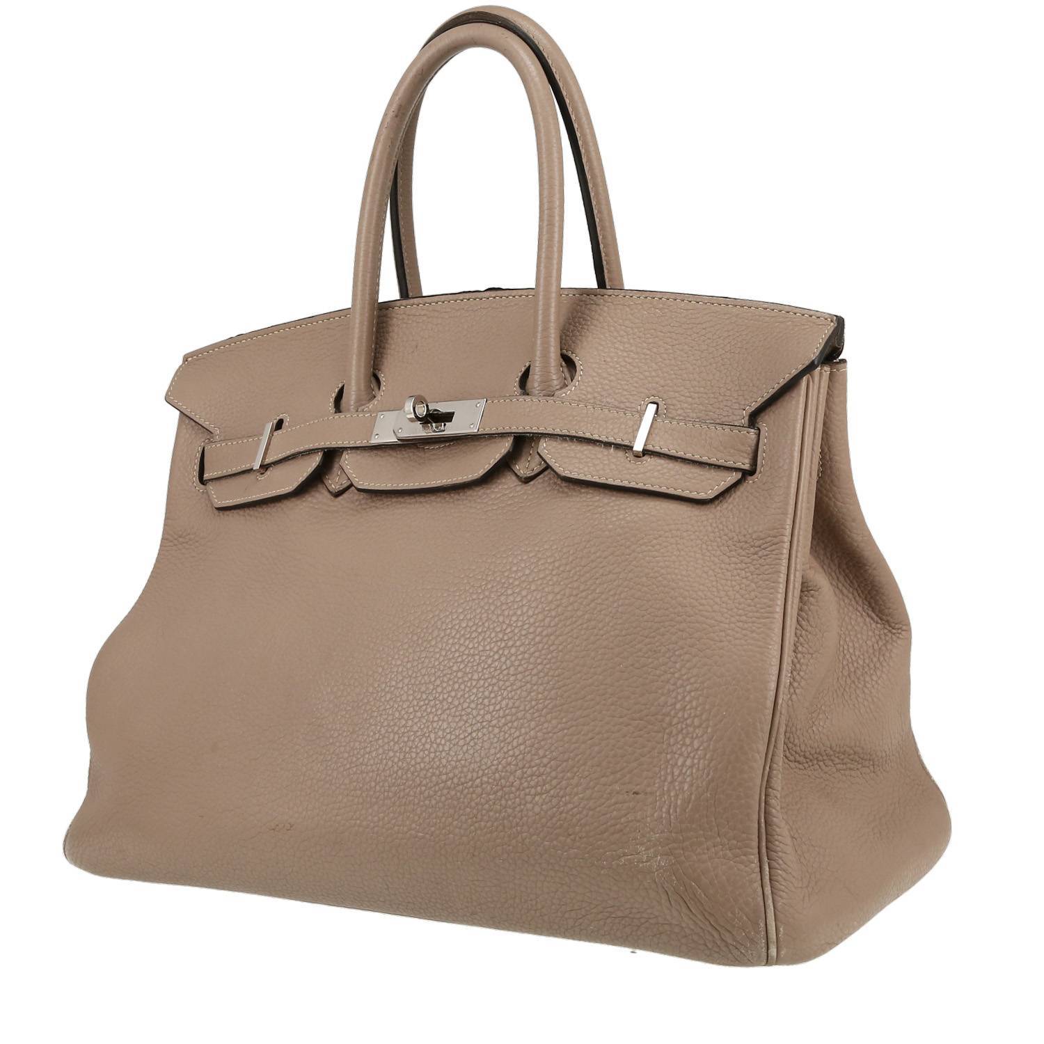 Exceptionnel sac à main Hermès Birkin 35 cm en cuir togo gris-tourterelle, garniture en métal palladié, double poignée en cuir togo gris-tourterelle permettant un porté main.