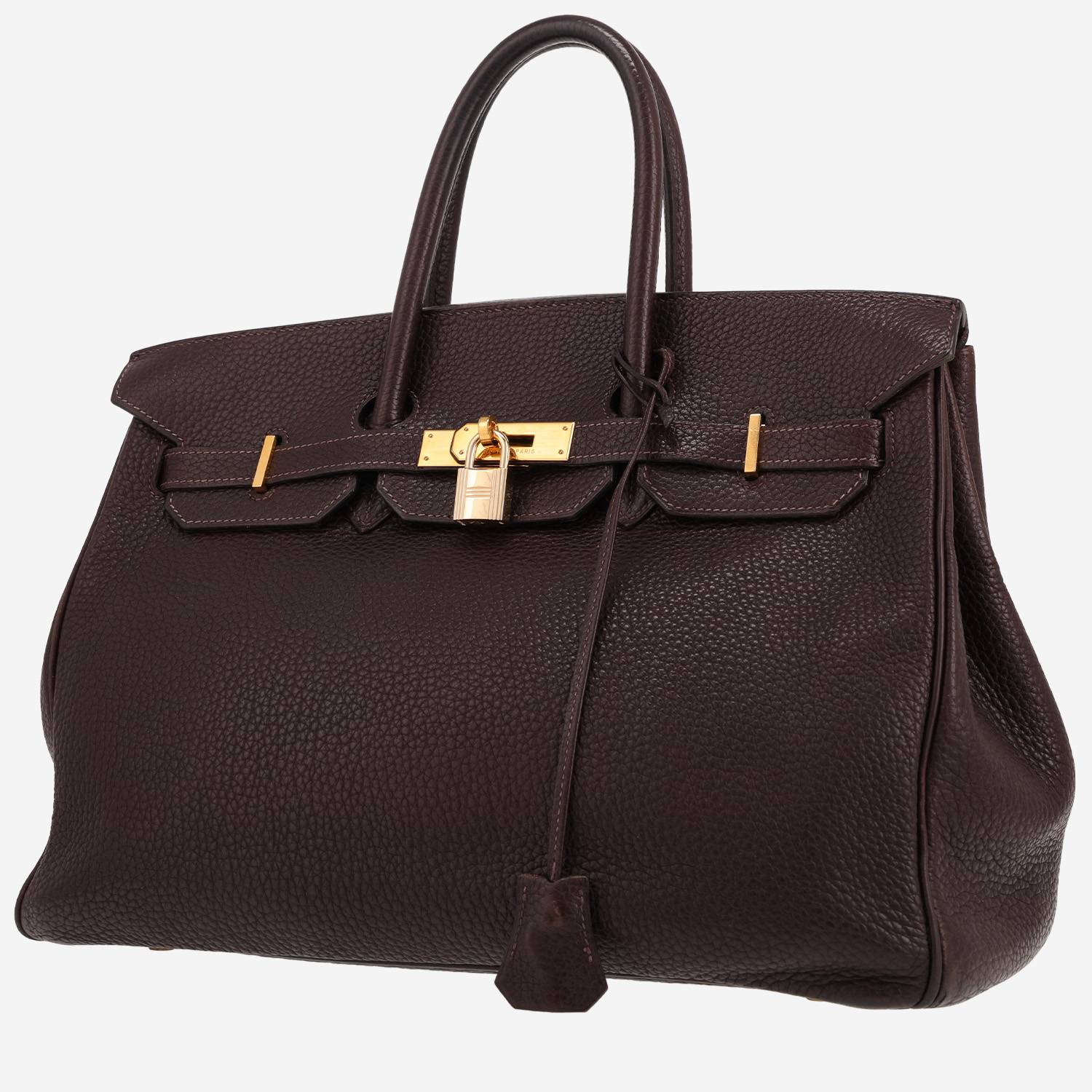 Chic sac à main Hermès Birkin 35 cm en cuir togo marron, garniture en métal doré, double poignée en cuir marron permettant un porté main.