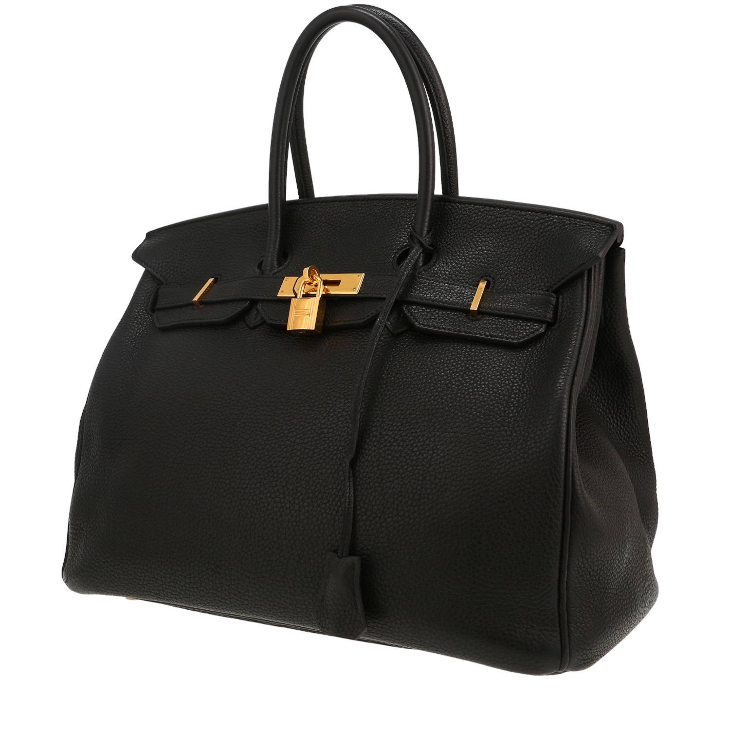 Exceptionnel sac à main Hermès Birkin 35 cm en cuir togo noir, garniture en métal doré, double poignée en cuir togo noir permettant un porté main.