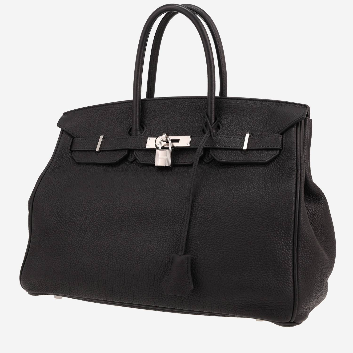 Magnifique sac à main Hermès Birkin 35 cm en cuir togo noir, garniture en métal palladié, double poignée en cuir noir permettant un porté main.