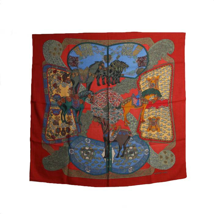 Hermès carré Art des steppes en twill de soie et cachemire rouge Ref Collector Square : 26 76 39