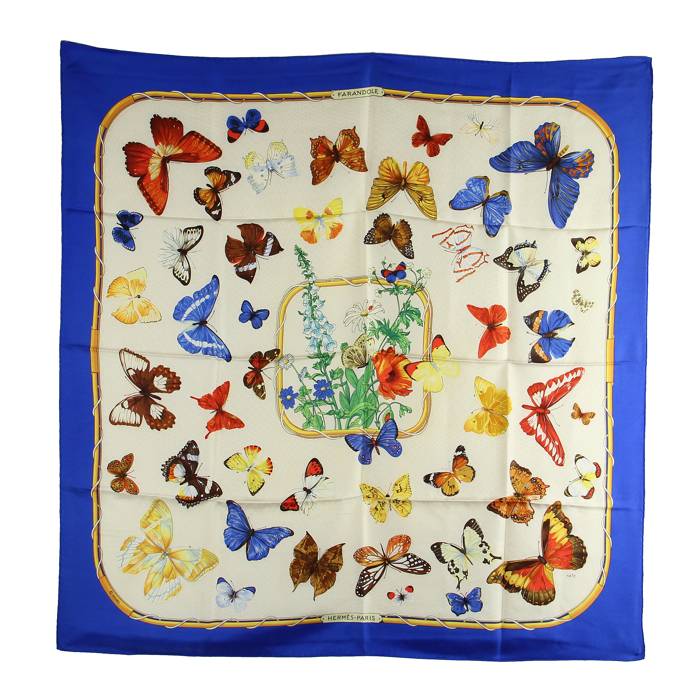 Hermès carré en twill de soie beige et bleu "Farandole" Ref Collector Square : 22 48 70