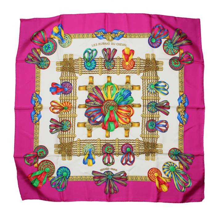 Hermès carré Les rubans du cheval en twill de soie blanc et rose Ref Collector Square : 24 20 99