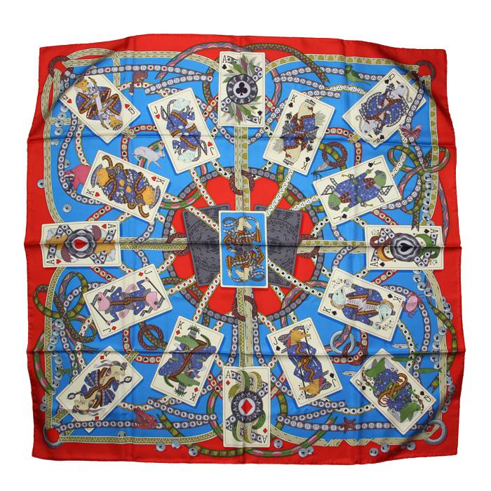 Hermès carré foulard Dame de coeurs en twill de soie rouge Ref Collector Square : 26 24 85