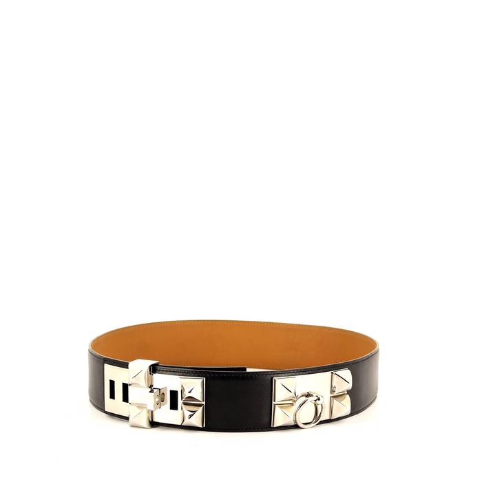 Ceinture Hermès en cuir noir et métal palladium Ref Collector Square : 29 13 33