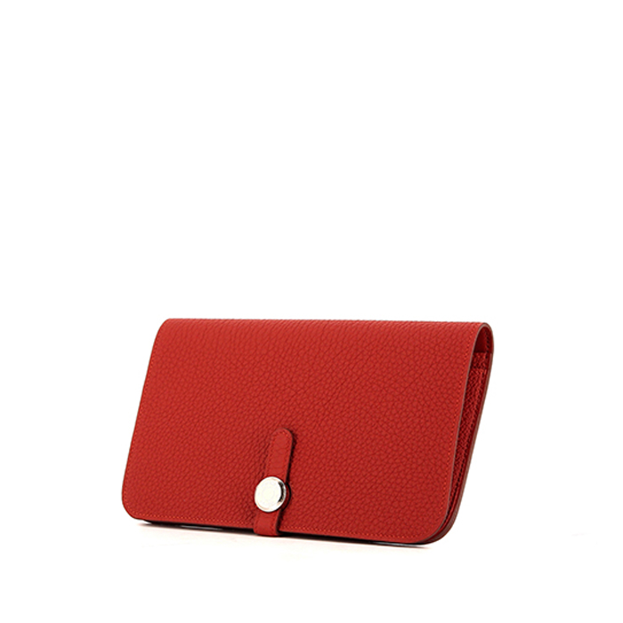 Délicat portefeuille Hermès Dogon - Pocket Hand en cuir togo rouge Vermillon, garniture en métal palladié, porté main.
