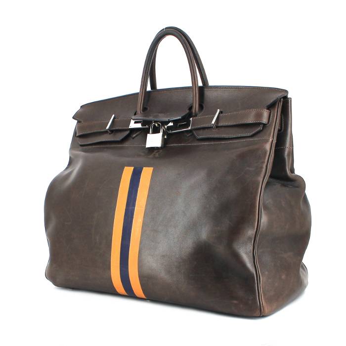 Hermes sac de voyage Haut à Courroies en cuir marron orange et bleu Ref Collector Square : 26 76 25
