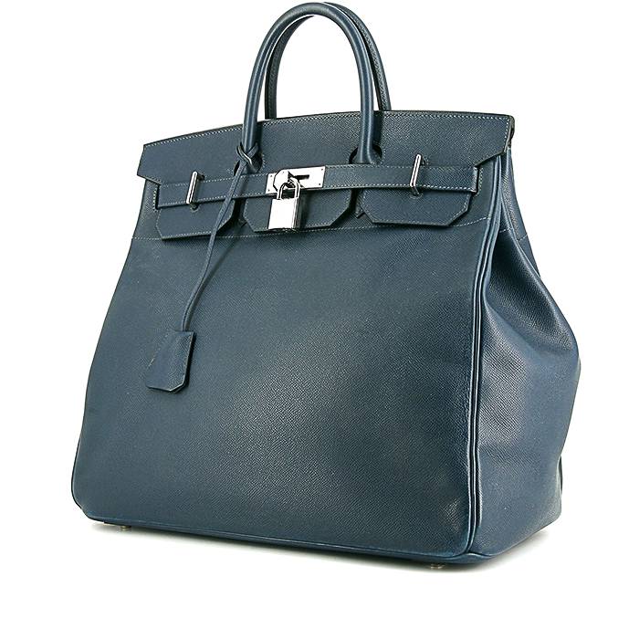 Sac de voyage Hermes Haut à Courroies - Travel Bag en cuir epsom bleu Ref Collector Square : 33 79 29