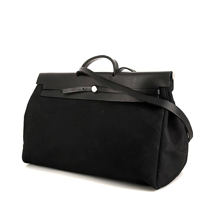 Sac de voyage Hermes Herbag en toile noire et cuir noir Ref Collector Square : 33 62 47