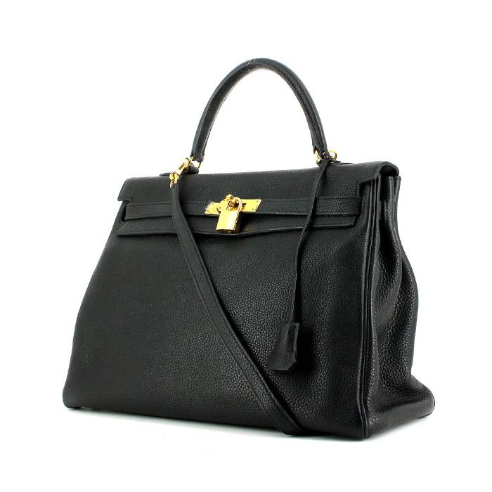 Exceptionnel sac à main en cuir togo noir, garniture en métal doré, poignée en cuir noir, une anse bandoulière en cuir noir permettant un porté main ou épaule.