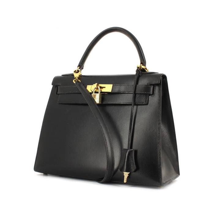 Sac à main Hermes Kelly 28 cm en cuir box noir Ref Collector Square : 32 28 01