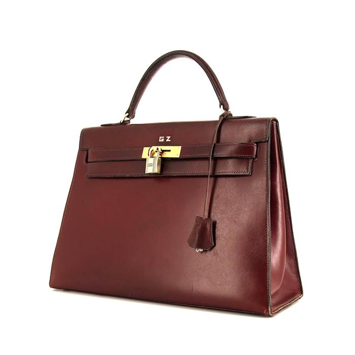 Sac à main Hermes Kelly 32 cm en cuir box bordeaux Ref Collector Square : 36 70 88