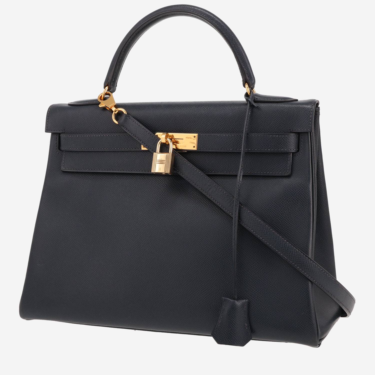Sac à main Hermès Kelly 32 cm en cuir Courchevel bleu indigo Ref Collector Square : 42 91 23