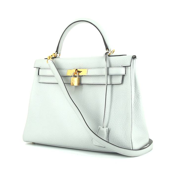 Sac à main Hermes Kelly 32 cm en cuir togo bleu Brume Ref Collector Square : 38 76 00