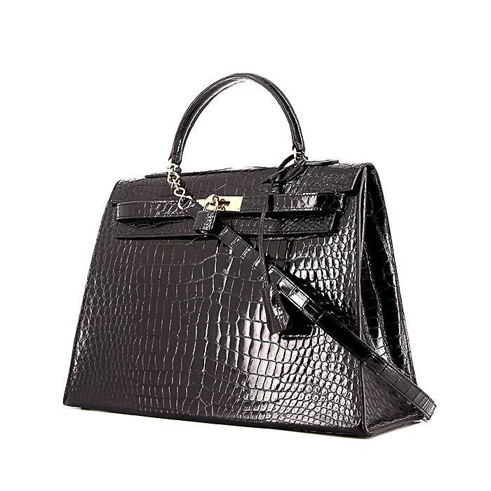 Sac à main Hermes Kelly 35 cm en crocodile porosus noir Ref Collector Square : 34 15 50