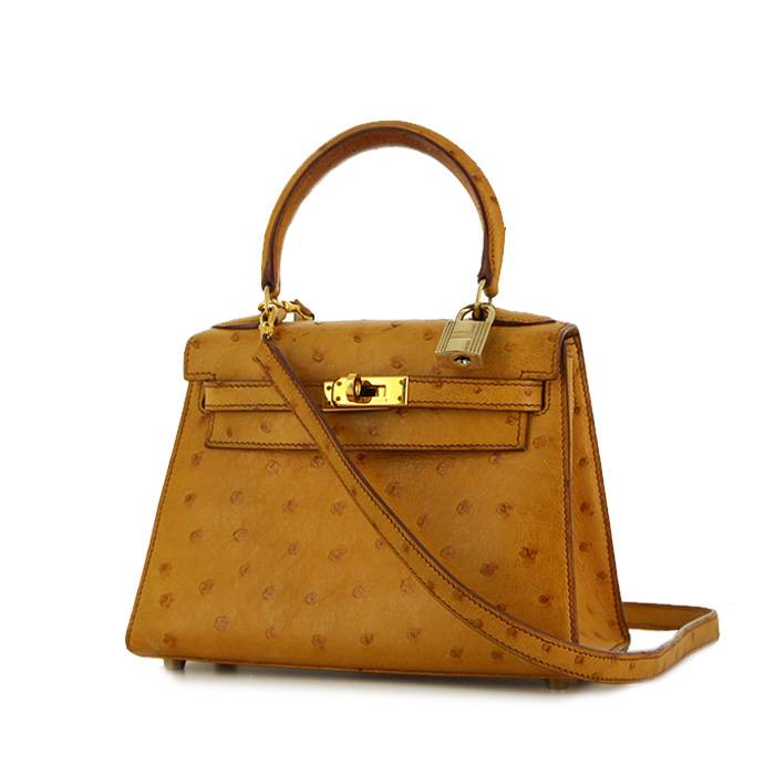 Sac à main Hermes Kelly en autruche cuir naturel Ref Collector Square : 33 35 83