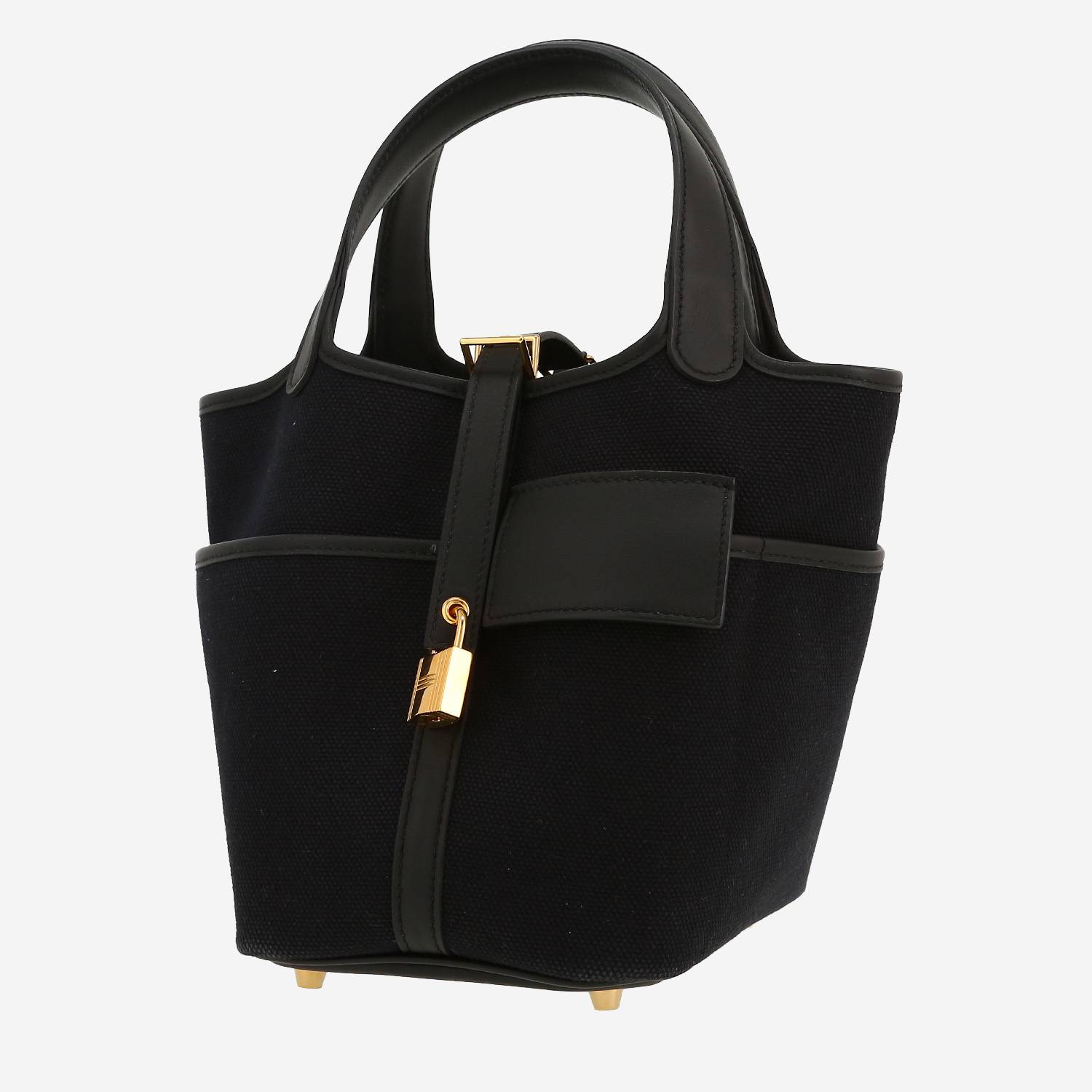Sac à main Hermès Picotin Cargo en toile noire et cuir noir Ref Collector Square : 42 16 86