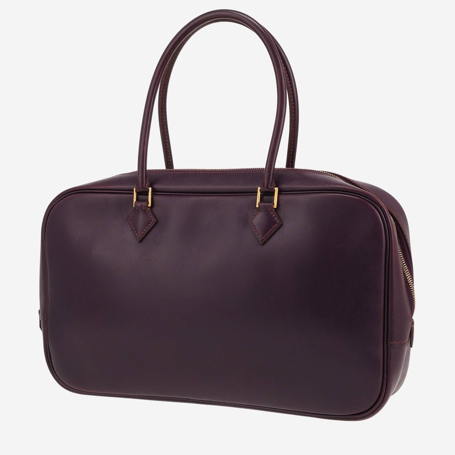 Magnifique sac à main Hermès Plume Elan en cuir box violet Raisin, garniture en métal doré, double poignée en cuir violet Raisin permettant un porté main.