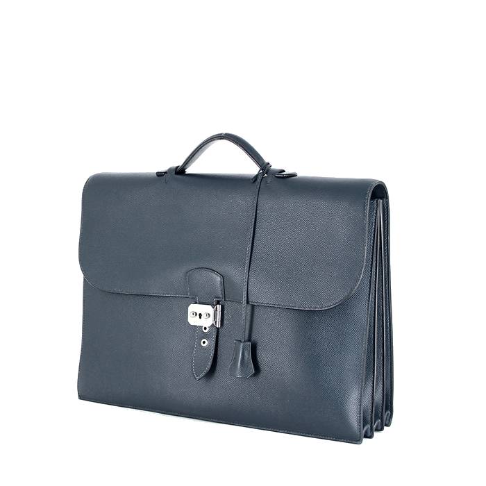 Hermès Sac à dépêches en cuir bleu marine garniture en métal palladié Ref Collector Square : 22 49 81
