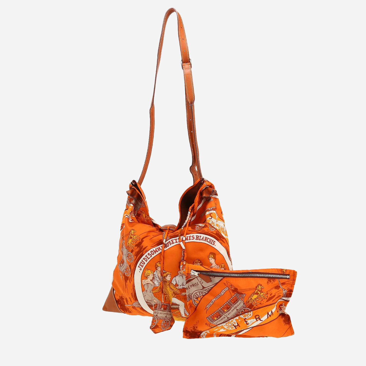 Sac bandoulière Hermès Silk City en soie orange et cuir Barénia fauve Ref Collector Square : 42 13 40