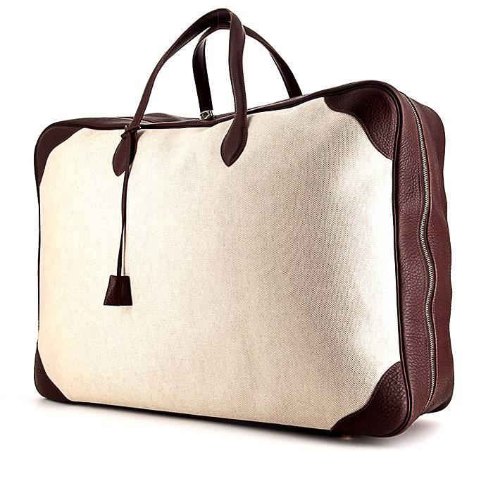 Sac de voyage Hermès Victoria Travel Bag en toile enduite beige et cuir togo marron Ref Collector Square : 33 73 32