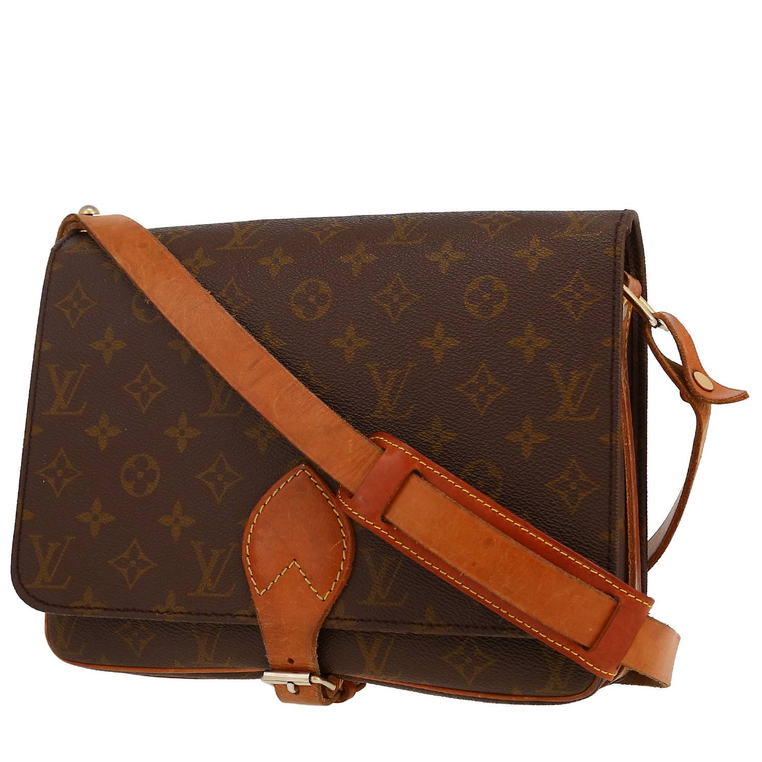 Magnifique sac bandoulière Louis Vuitton Cartouchiére en toile monogram marron et cuir naturel, garniture en métal doré, une anse ajustable en cuir naturel permettant un porté épaule ou bandoulière.