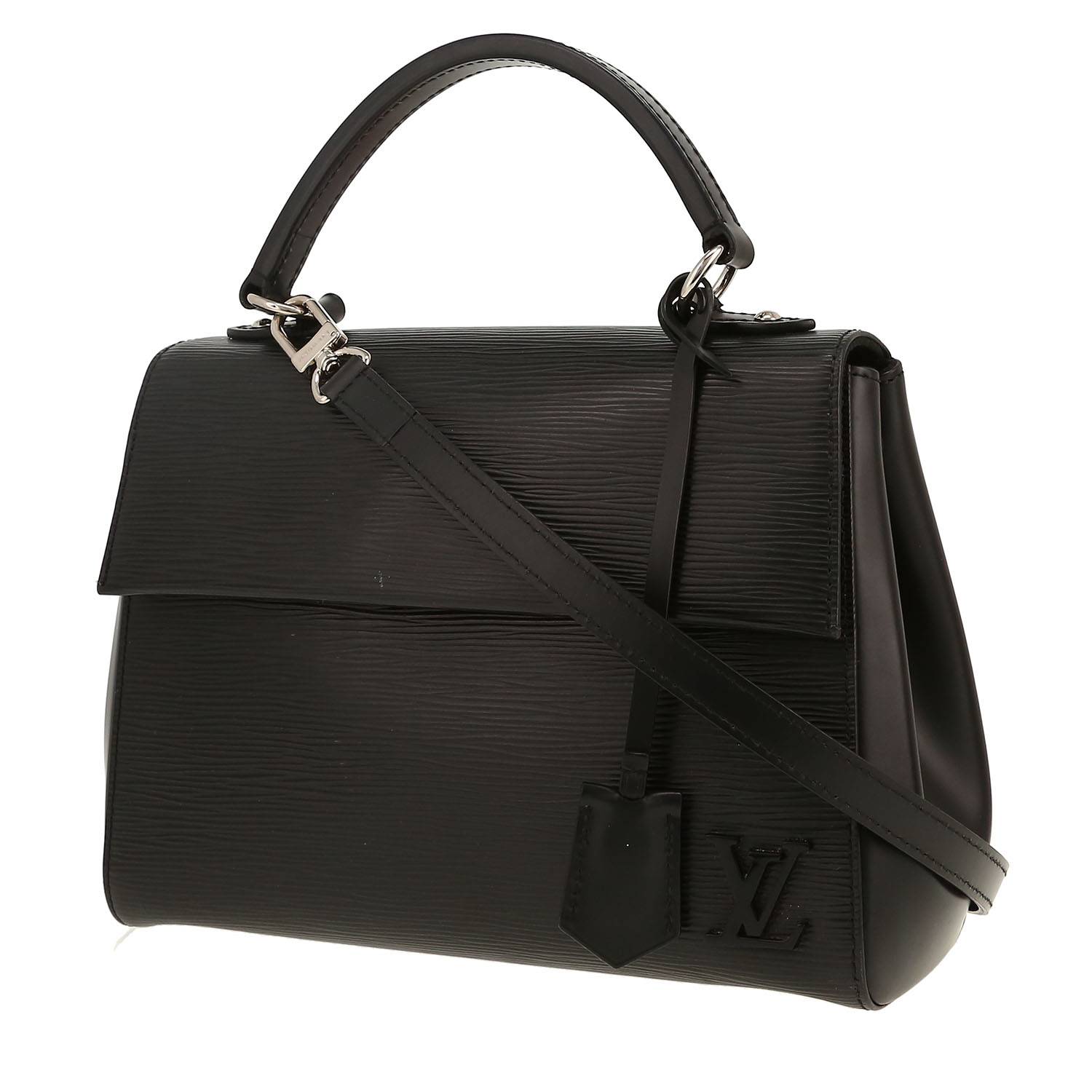 Magnifique sac à main Louis Vuitton Cluny en cuir épi noir, garniture en métal argenté, poignée simple en cuir noir, une anse bandoulière amovible en cuir noir permettant un porté main ou épaule ou bandoulière.