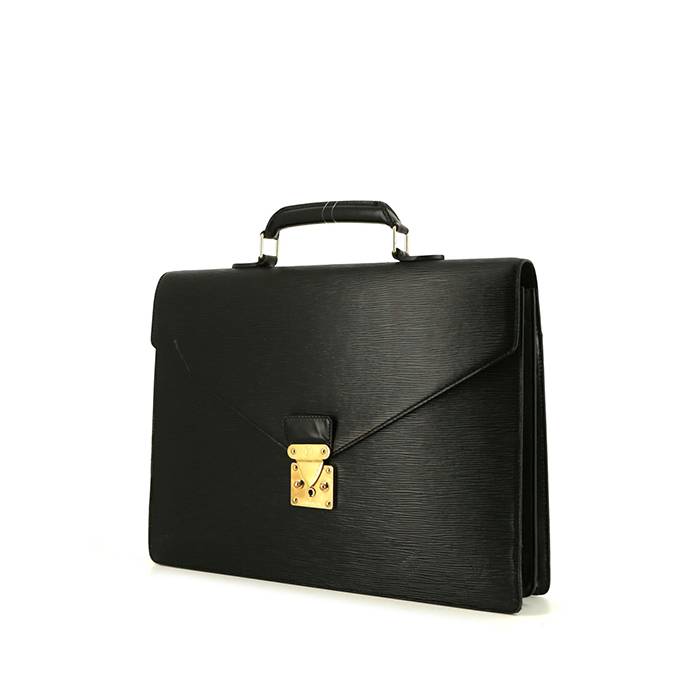 Élégant porte-documents Louis Vuitton Conseiller en cuir épi noir, garniture en métal doré, poignée en cuir noir permettant un porté main.