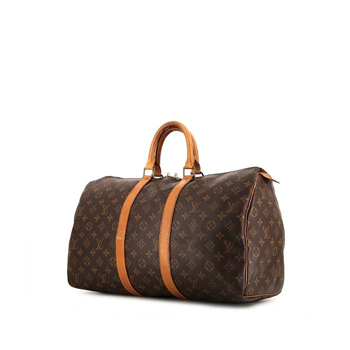 Sac de voyage Louis Vuitton Keepall 45 en toile monogram marron et cuir naturel Ref Collector Square : 35 98 38