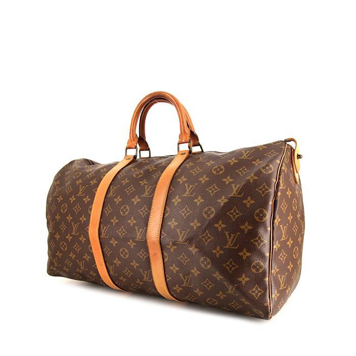 Sac de voyage Louis Vuitton Keepall 50 cm en toile monogram marron et cuir naturel Ref Collector Square : 37 22 78