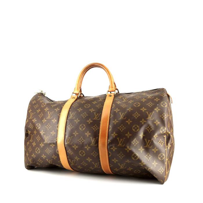 Sac de voyage Louis Vuitton Keepall 50 cm en toile monogram marron et cuir naturel Ref Collector Square : 38 75 73