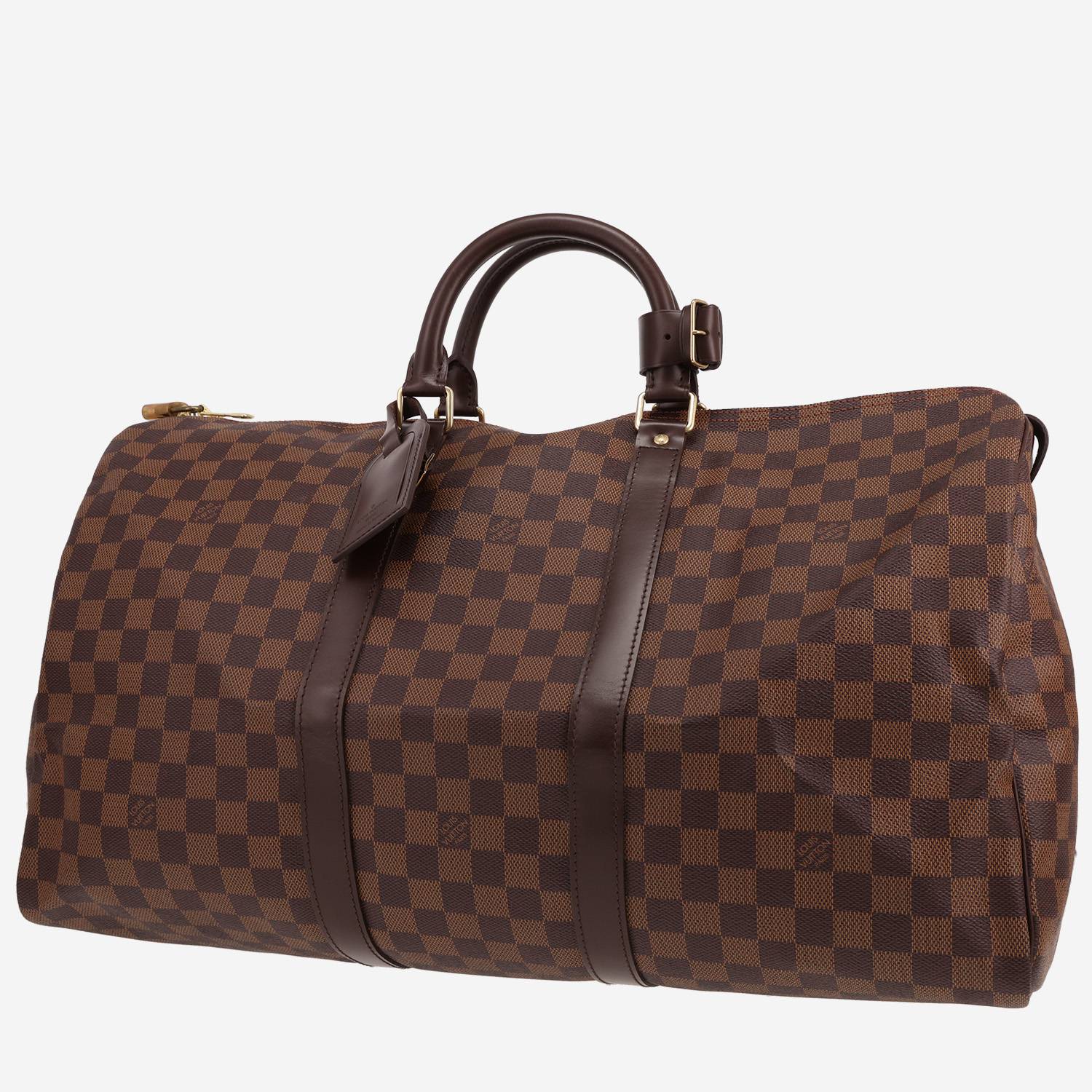 Sac de voyage Louis Vuitton Keepall 50 en toile damier ébène et cuir marron Ref Collector Square : 43 02 44