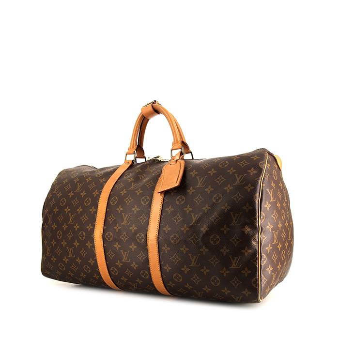 Sac de voyage Louis Vuitton Keepall 55 cm en toile monogram marron et cuir naturel Ref Collector Square : 36 78 90