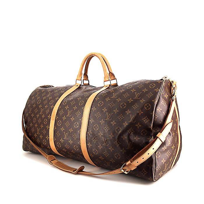 Sac de voyage Louis Vuitton Keepall 55 en toile monogram marron et cuir naturel Ref Collector Square : 34 08 03
