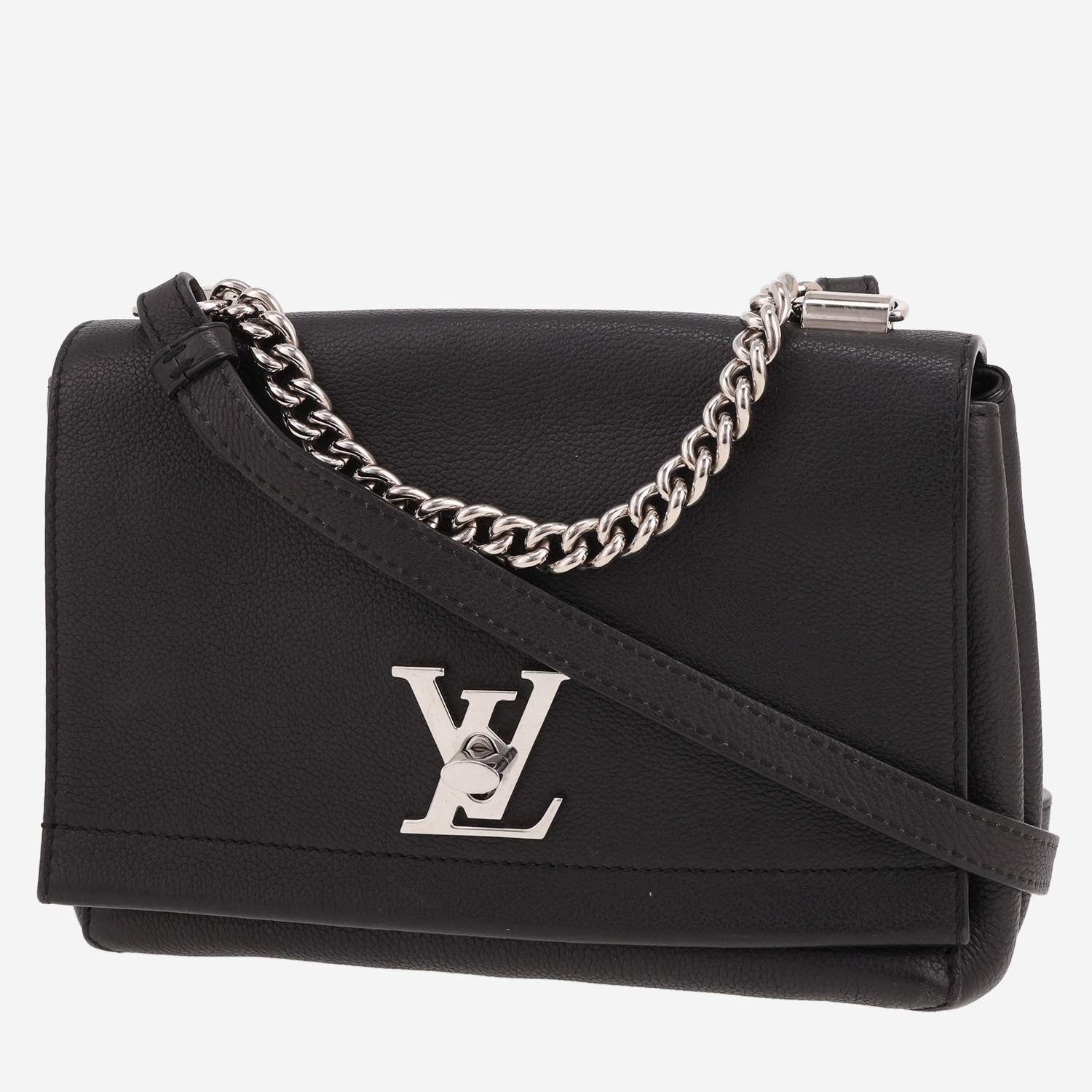 Ravissant sac bandoulière Louis Vuitton Lockme en cuir grainé noir, garniture en métal argenté, poignée en métal argenté, une anse bandoulière amovible en cuir noir permettant un porté main ou épaule ou bandoulière.