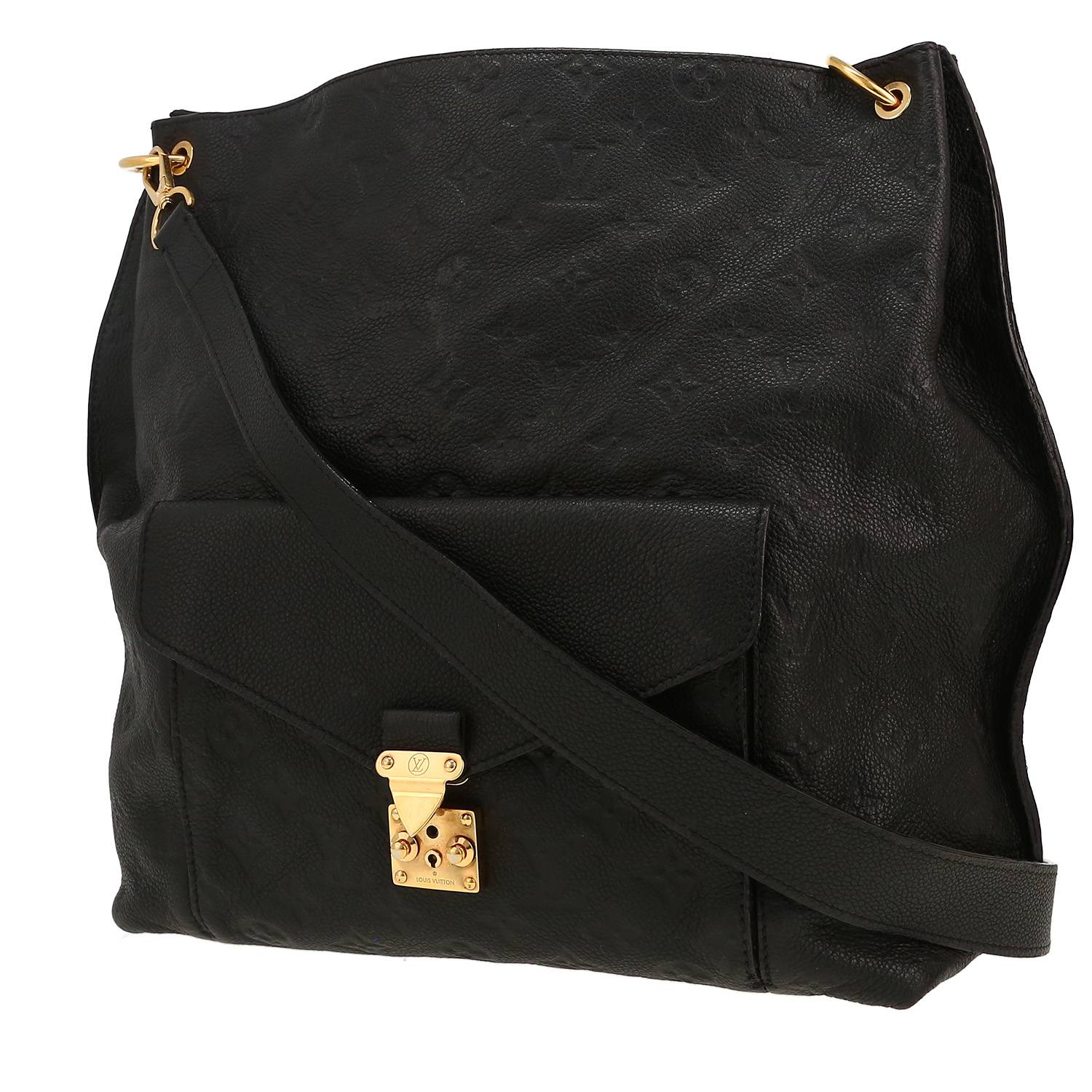 Joli sac à main Louis Vuitton Metis Hobo en cuir monogram empreinte noir, garniture en métal doré, anse bandoulière en cuir monogram noir permettant un porté main ou épaule.