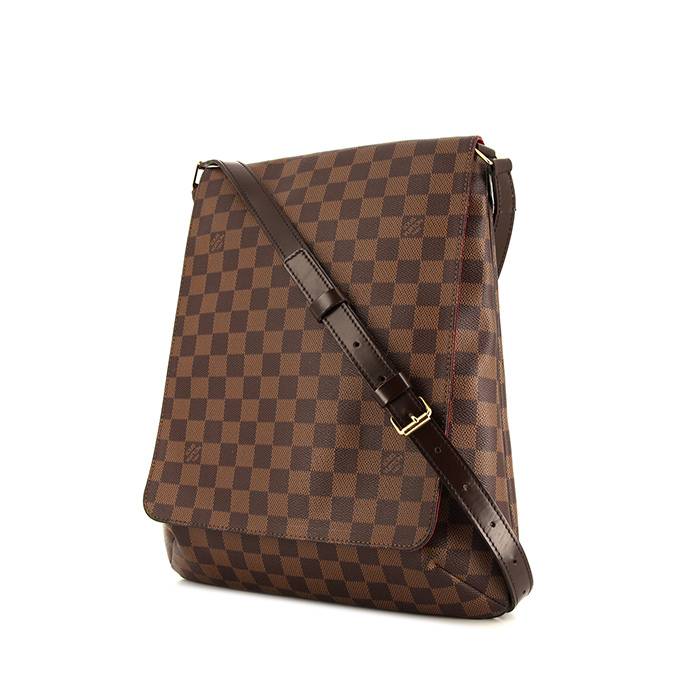 Pratique sac bandoulière Louis Vuitton Musette en toile damier enduite marron et cuir marron, anse bandoulière ajustable en cuir naturel permettant un porté épaule ou bandoulière.