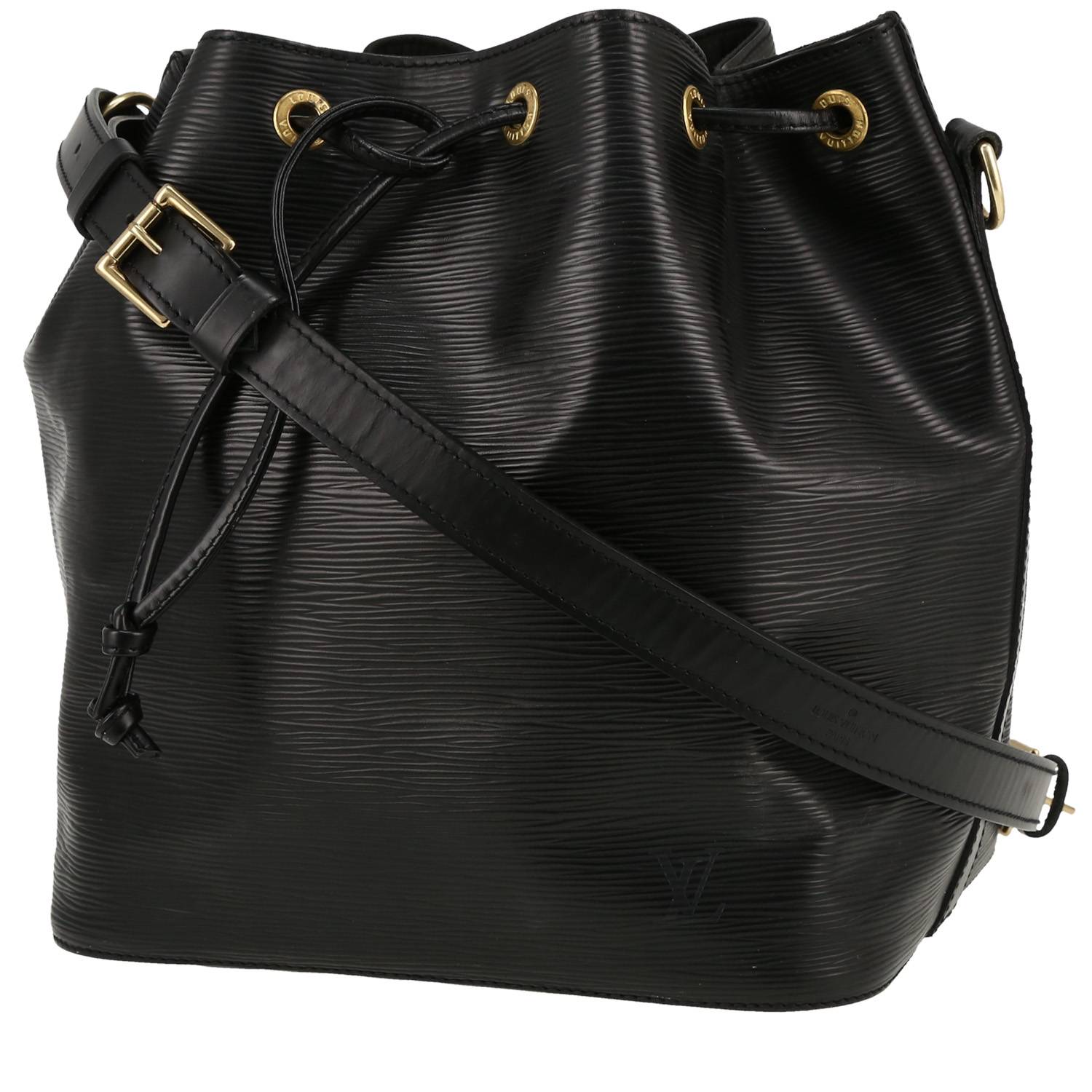 Incontournable sac cabas Louis Vuitton Noé en cuir épi noir et cuir naturel, garniture en métal doré, une anse réglable en cuir noir permettant un porté épaule.